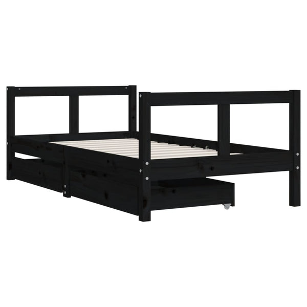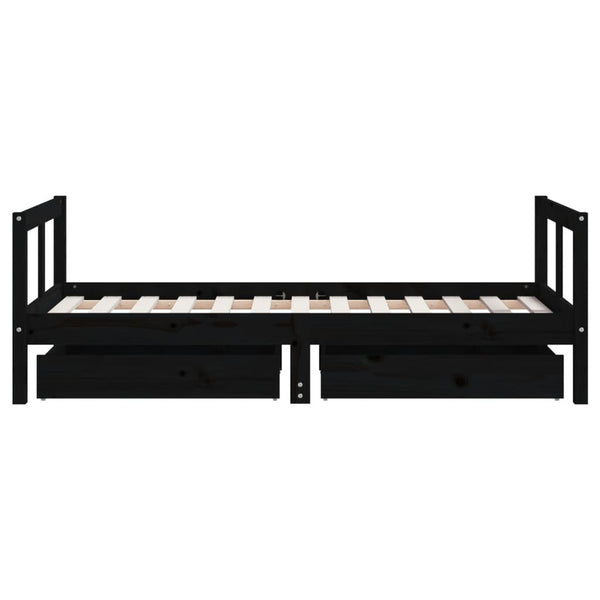 Musta lasten sängynrunko laatikoilla 80x160cm mänty