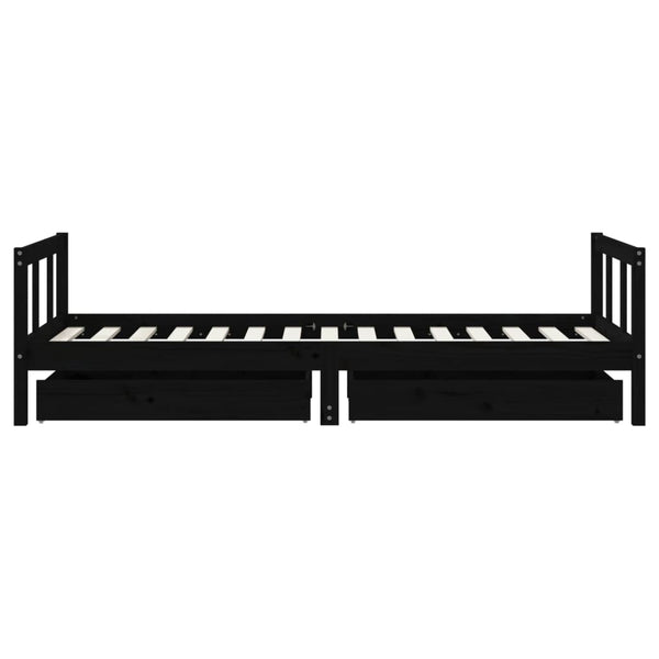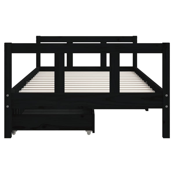 Musta lasten sängynrunko laatikoilla 90x190cm mänty