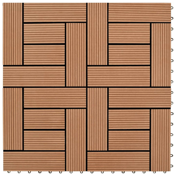 Puukomposiittilaattasetin yksittäisen laatan koko on 30 x 30 cm. Settiin sisältyy 22 laattaa, jotka peittävät yhteensä kahden neliömetrin kokoisen alueen. Laatat sopivat ihanteellisesti terassille, parvekkeelle, kylpyhuoneeseen tai uima-allasalueelle.