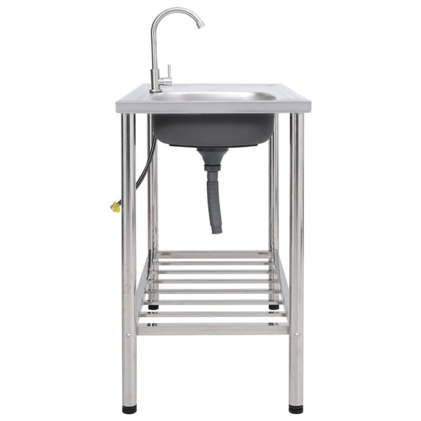 Ruostumaton teräs leirintäalueen pesuallas hanalla