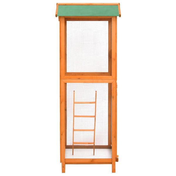 Laadukkaan kuusirungon ansiosta, ulkolintuhäkki on vahva ja kestävä. Vedenkestävä kattokangas pitää sateen poissa. Tikapuiden avulla linnut voivat nousta ja laskeutua helposti. Lintuhäkin pohjalla olevan ulosvedettävän tarjottimen ansiosta, se on helppo puhdistaa. Häkissä on kaksi ovea, yksi iso siivoamiseen ja yksi pieni syöttämiseen. Molemmat ovet ovat lukittavissa liukuvilla lukoilla.