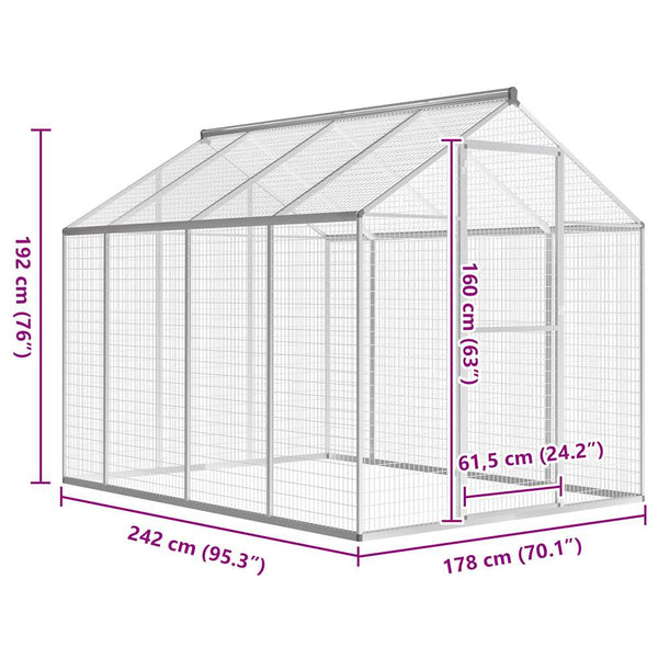 Tässä sisään käveltävässä lintuhäkissä on tukeva ja huoltovapaa alumiinirakenne sekä lujatekoiset saranoidut ovet, joiden vuoksi häkki on erittäin kestävä. Se on niin vahva, että se kestää jopa henkilön roikkumisen katosta.