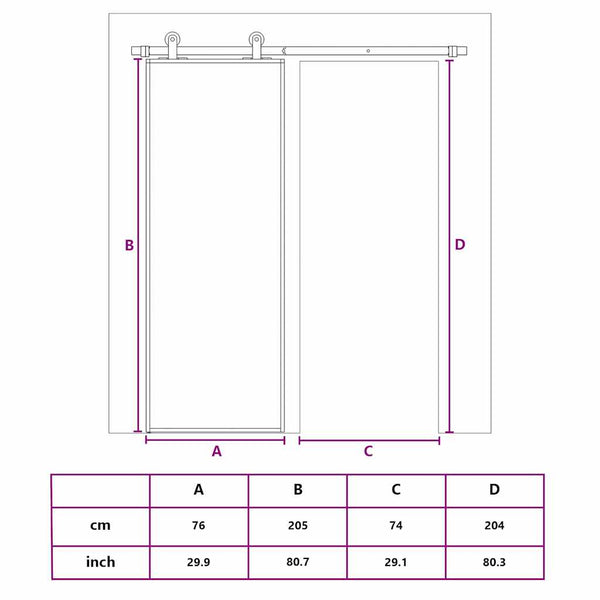 Musta liukuovi 76x205cm karkaistu lasi ja alumiini