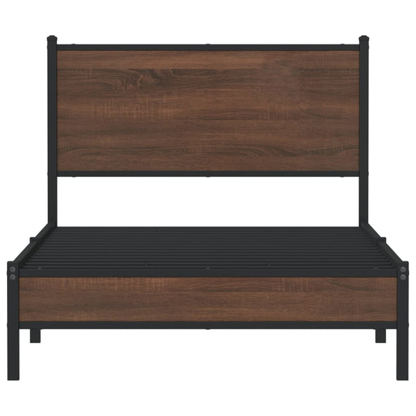 Ruskea tammi metallinen sängynrunko päädyllä 107x203cm
