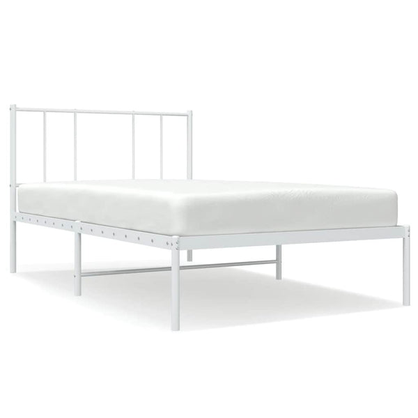 Valkoinen metallinen sängynrunko päädyllä 75x190cm