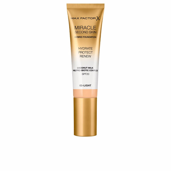 Max Factor Miracle Touch Toinen Iho Meikkivoide SPF20 #3-Light tarjoaa virheettömän ja luonnollisen lopputuloksen. Sen kevyt koostumus levittyy iholle vaivattomasti, häivyttäen pieniä virheitä ja tasapainottaen ihon sävyä. Sisältämänsä SPF20 suojaa ihoa auringon haitallisilta säteiltä. Sopii erityisesti vaalealle iholle.