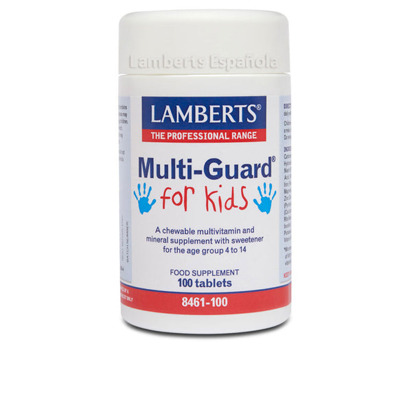 Lamberts Multi Guard For Kids on lasten vitamiini- ja kivennäisainetabletti, suunniteltu tukemaan kasvavaa kehoa ja mieltä. Se sisältää yli 20 eri ravintoainetta, mukaan lukien tärkeitä vitamiineja ja mineraaleja kuten A-, C- ja D-vitamiinit sekä magnesiumia ja rautaa. Tämä tuote on kehitetty erityisesti 4-14-vuotiaille lapsille, ja sen annostus on suunniteltu tukemaan lapsen päivittäistä ravitsemusta. Tabletit ovat helposti nieltäviä ja niillä on miellyttävä hedelmäinen maku.