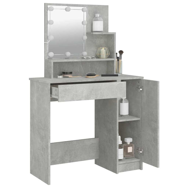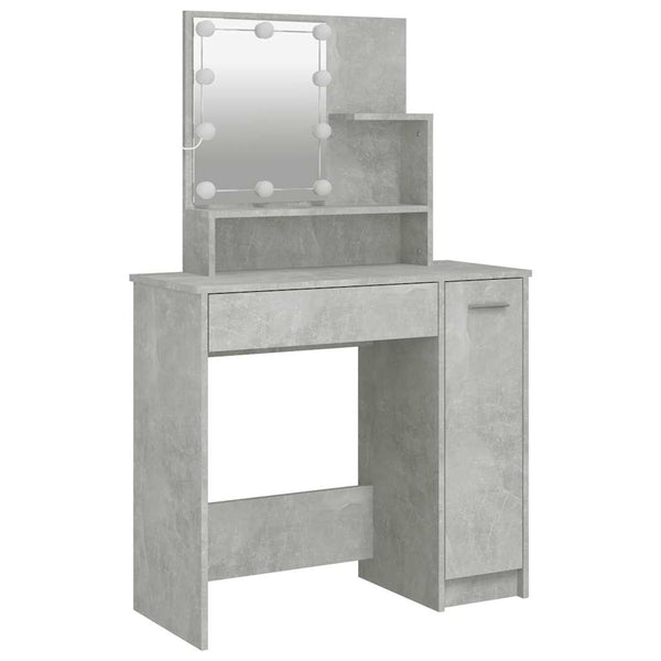 Betoninharmaa peilipöytä led-valoilla 86,5x35x136cm