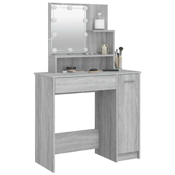 Harmaa peilipöytä led-valoilla 86,5x35x136cm