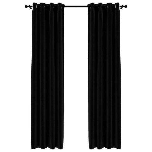 Musta pellavamaiset pimennysverhot renkailla 140x245cm 2 kpl