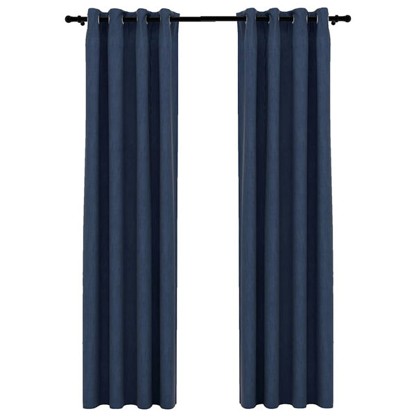 Sininen pellavamaiset pimennysverhot renkailla 140x245cm 2 kpl