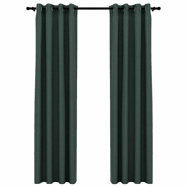 Vihreä pellavamaiset pimennysverhot renkailla 140x245cm 2 kpl