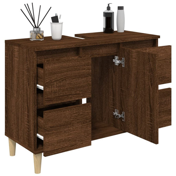 - Puujalat: Täydestä eukalyptuspuusta valmistetut jalat antavat pesuallaskaapille luonnollisen ja miellyttävän ulkonäön ja takaavat samalla sen vakauden.
