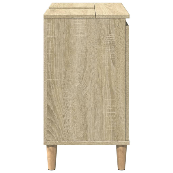 - Puujalat: Tämän kylpyhuonekaapin puujalat takaavat tukevuuden ja vakauden.