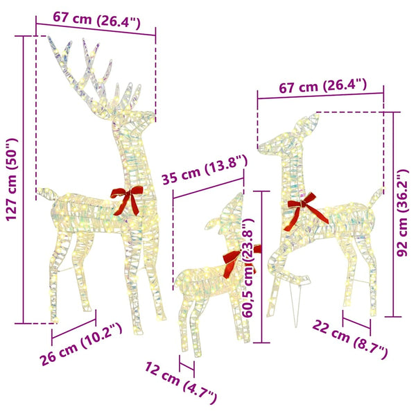 Lämmin valkoinen poro-perhe 67x26x127cm 3 pcs pet