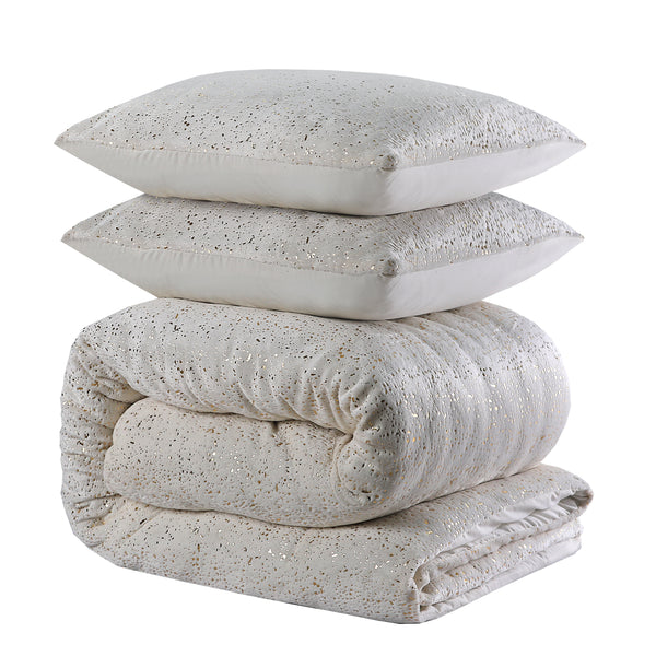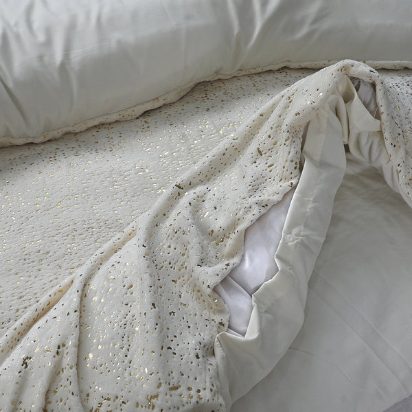 Pussilakanasetti Glamour Flanel Sprankle Foil Kerma - Ylellisyyttä ja Mukavuutta Makuuhuoneeseesi