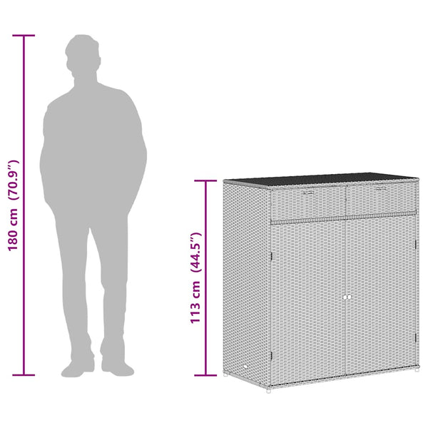 Beige puutarhan säilytyskaappi 105x55x113cm polyrottinki