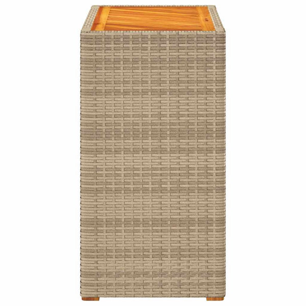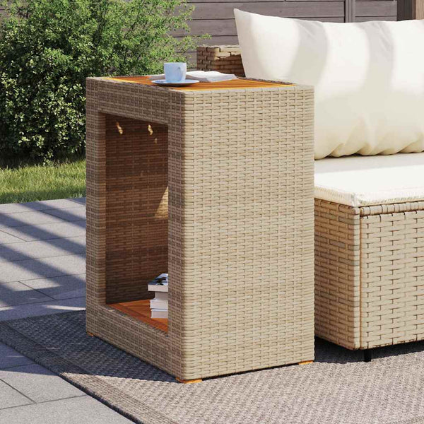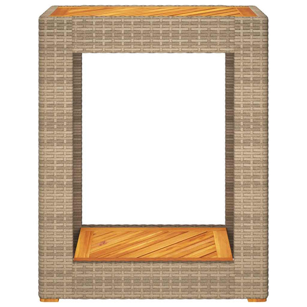 Beige puutarhan sivupöytä 60x40x75cm puulevyllä polyrottinki