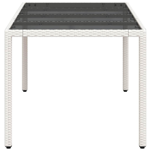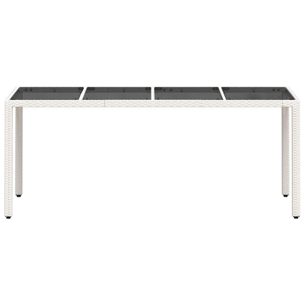 Valkoinen puutarhapöytä lasipöytälevy 190x90x75cm polyrottinki