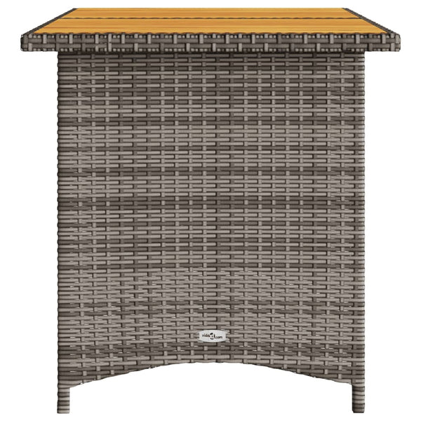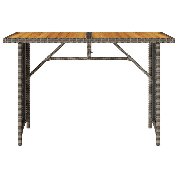Harmaa puutarhapöytä puupöytälevyllä 110x68x70cm polyrottinki
