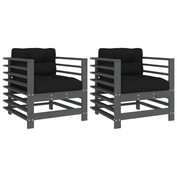 Harmaa puutarhatuolit tyynyillä 2 kpl mänty