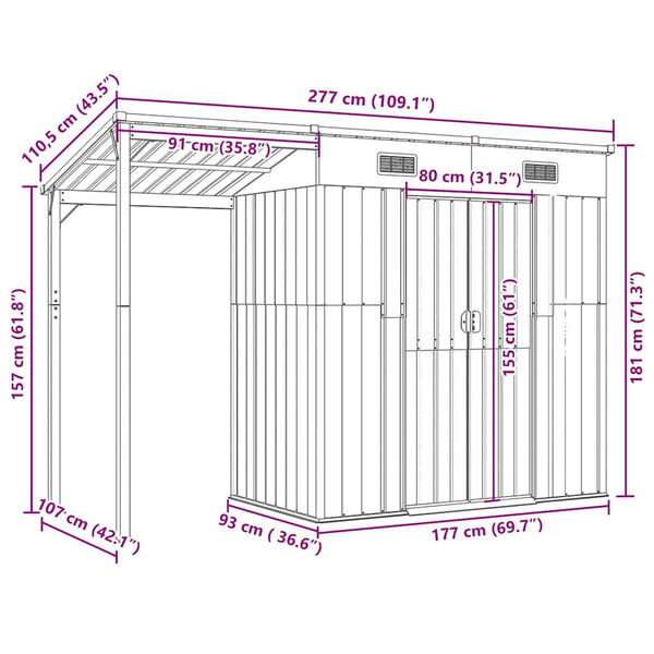 Vaaleanruskea puutarhavaja lisäkatolla 277x110,5x181cm teräs
