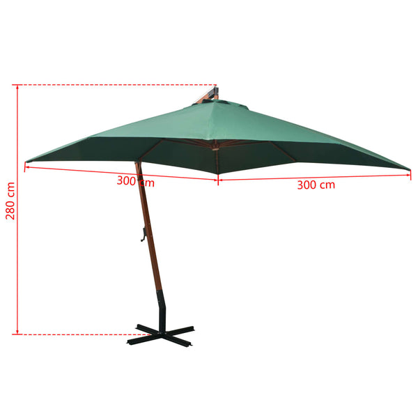 Vihreä roikkuva päivänvarjo 300x300cm puutanko