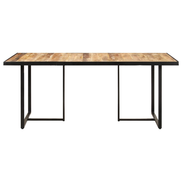 Tämä ruokapöytä on valmistettu täydestä mangopuusta. Täysi mangopuu on trooppinen lehtipuu, jolla on kykyä kantaa painoa ja kestää ajan patinaa. Laadukas käsityötaito ja kauniit puun kuviot tekevät jokaisesta pöydästä hieman toisista eroavan. Pöydän jauhemaalatut rautajalat tuovat lisänsä pöydän tukevuuteen ja vakauteen.