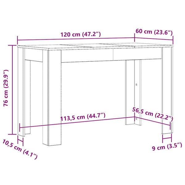 - Kokonaismitat: 120 x 60 x 76 cm (P x L x K)