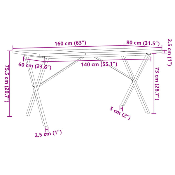Ruokapöytä x-runko 160x80x75,5cm mänty ja valurauta