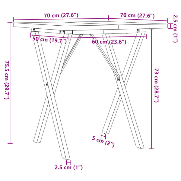 Valkoinen ruokapöytä x-runko 70x70x75,5cm mänty ja valurauta