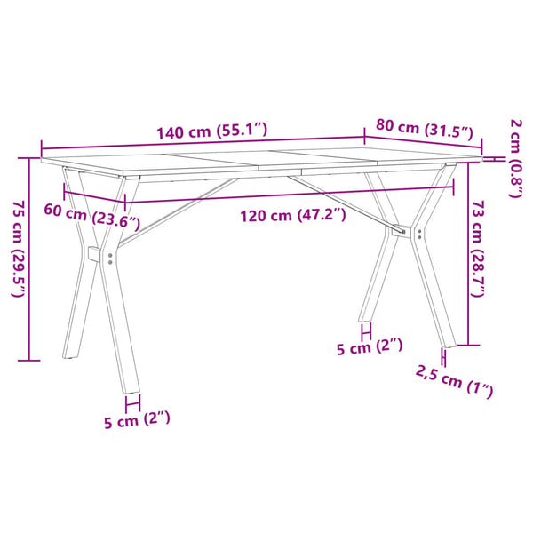 Ruokapöytä y-runko 140x80x75cm mänty ja valurauta