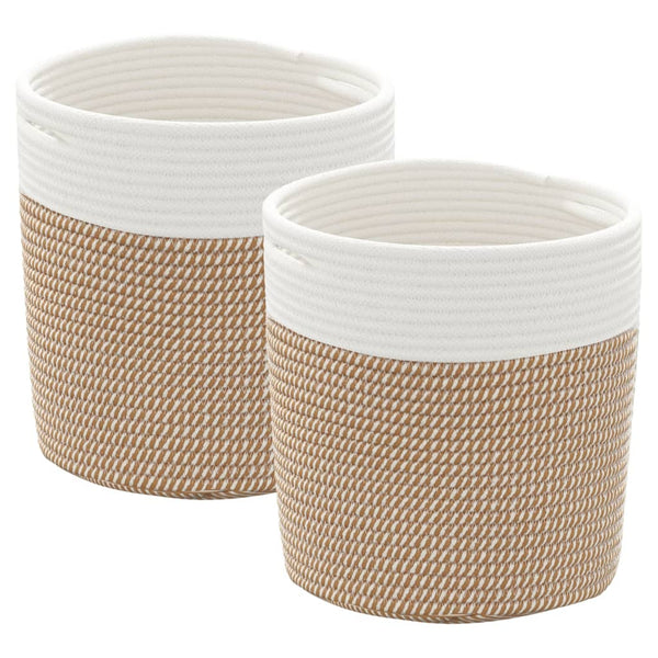 Ruskea ja valkoinen säilytyskorit Ø28x28cm 2 kpl puuvilla