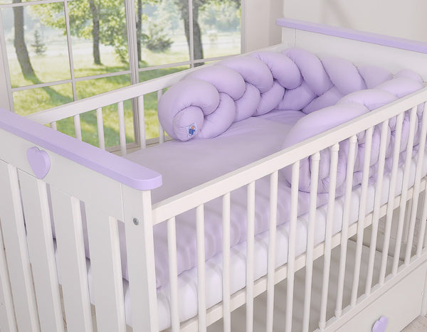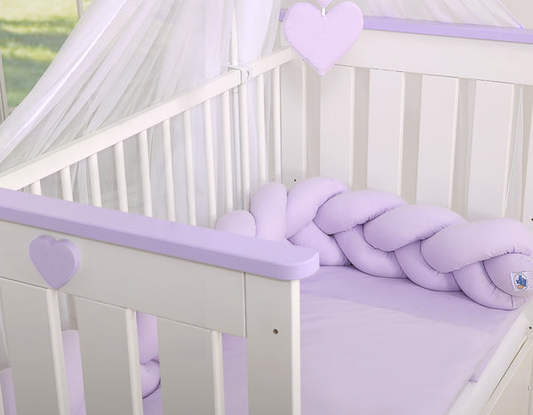 Valittavana on useita värejä, joten voit valita juuri sinun huoneesi tyyliin sopivan sävyn. Tämä Knot-puskuri on saatavilla upeassa lilan sävyssä, joka lisää ripauksen pehmeyttä ja kauneutta vauvan huoneeseen.