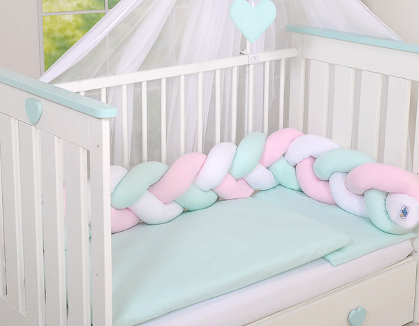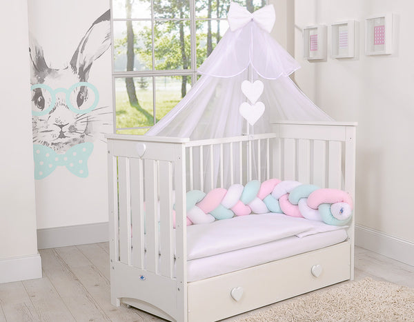 Kuvailemme ylpeänä uutta Knot-petausta valikoimassamme! Tämä kaunis ja erittäin pehmeä punottu petaus on valmistettu 100% puuvillasta. Se kiinnitetään helposti sängyn pylväisiin, ja se suojaa vauvan käsiä ja jalkoja jäämästä kiinni pylväiden väliin. Lisäksi se suojaa vauvan päätä ja kehoa iskeytymästä sängyn reunoja vasten.