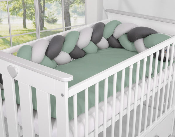 Knot-bumper on saatavilla monissa eri väreissä, joten voit valita juuri sinun huoneeseesi sopivan sävyn. Tämä pastellinvihreä, harmaa ja antrasiitti yhdistelmä on tyylikäs ja sopii moniin erilaisiin sisustustyyleihin.