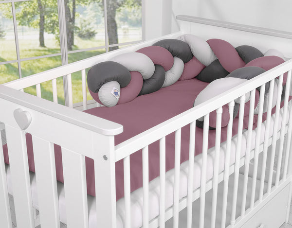 Hurmaava ja erittäin pehmeä punottu sänkysuoja, joka on valmistettu 100% puuvillasta. Tämä sänkysuoja voidaan kiinnittää sängyn päätyihin, ja se suojaa vauvan käsiä ja jalkoja jäämästä kiinni sängyn pylväisiin sekä suojaa vauvan päätä ja kehoa osumasta sängyn reunoja vasten. Mukana tulevien puuvillaisen rusettien avulla sänkysuoja voidaan kiinnittää sängyn päätyihin. Tämä sänkysuoja mahdollistaa enemmän ilmavirtaa sängyn ja ulkomaailman välillä verrattuna perinteisiin sänkysuojiin. Valittavana on monia eri värejä, joten löydät varmasti juuri sinun huoneeseesi sopivan sävyn. Koko: Pituus 180 cm, korkeus 20 cm, paino 1,6 kg.