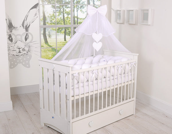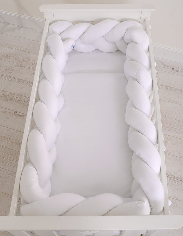 Valitse tämä kaunis ja käytännöllinen letitetty reunapehmuste, joka lisää pinnasängyn turvallisuutta ja tekee vauvan huoneesta entistäkin kodikkaamman!