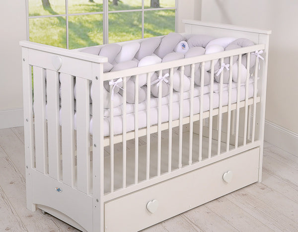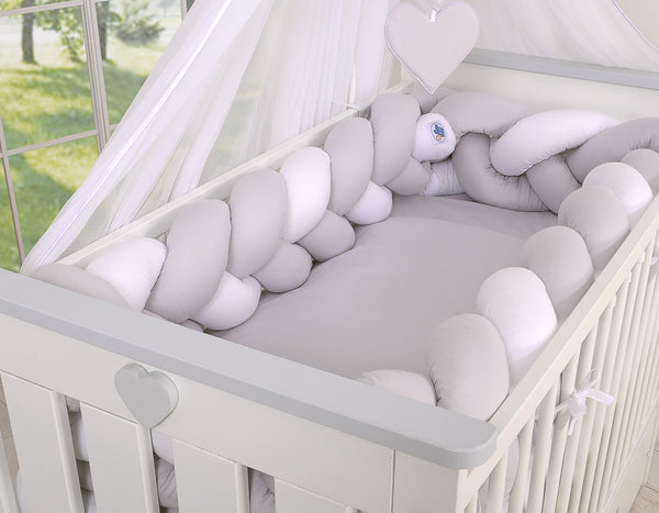 Valitse tämä kaunis ja käytännöllinen letitetty reunapehmuste, joka lisää pinnasängyn turvallisuutta ja tekee vauvan huoneesta entistäkin kodikkaamman!