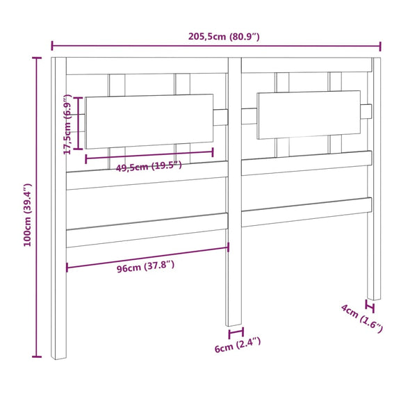 Hunajanruskea sängynpääty 205,5x4x100cm mänty