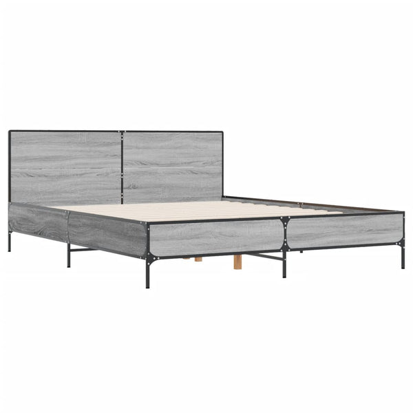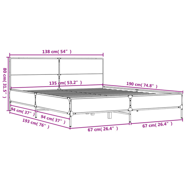 Harmaa sängynrunko 135x190cm puinen ja metalli