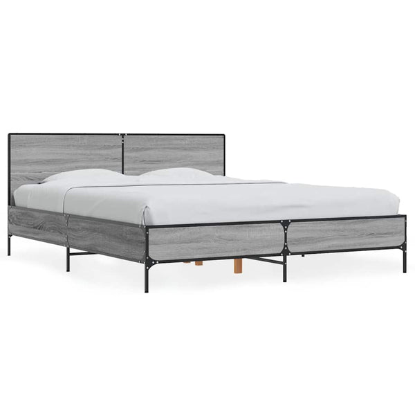 Harmaa sängynrunko 150x200cm puinen ja metalli