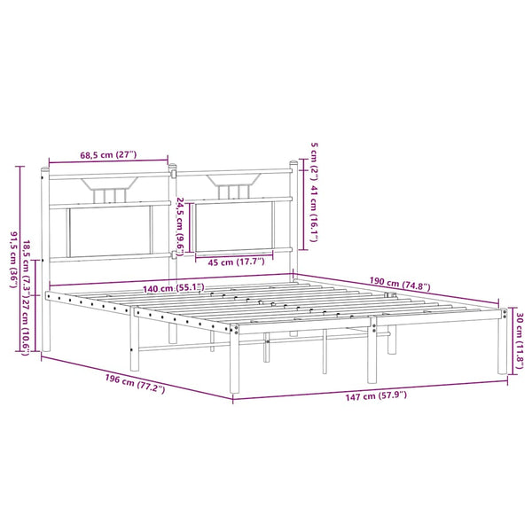 Sonoma-tammi sängynrunko ilman patjaa Trufasu 140x190cm (puinen)