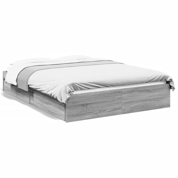 Harmaa sängynrunko laatikoilla 120x190cm puinen