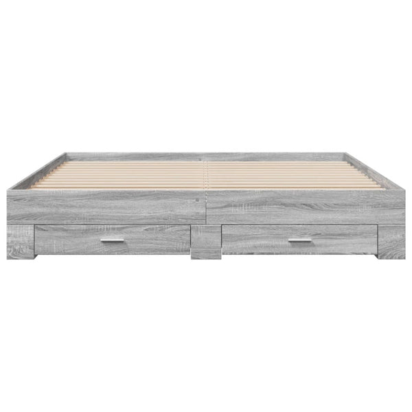 Harmaa sängynrunko laatikoilla Veligean 200x200cm (puinen)