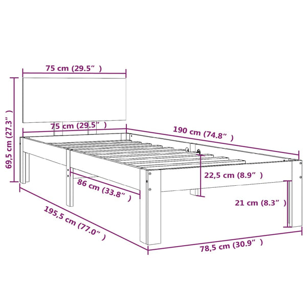 - Tämä sängynrunko sopii patjalle, jonka mitat ovat 75 x 190 cm (2FT6 Small Single).