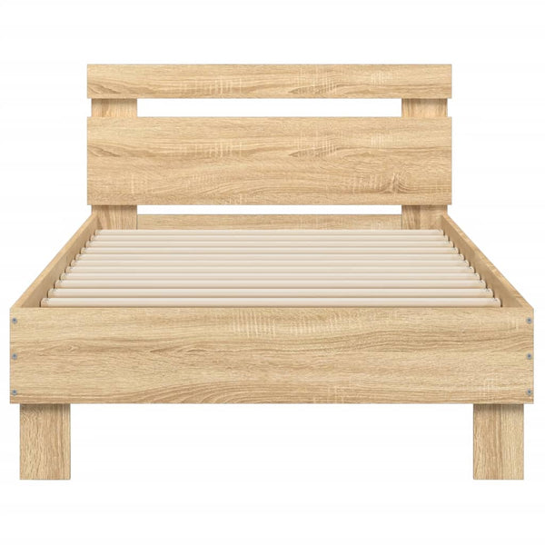 Sängynrunko päädyllä ja LED-valoilla Sonoma-tammi 90x200 cm