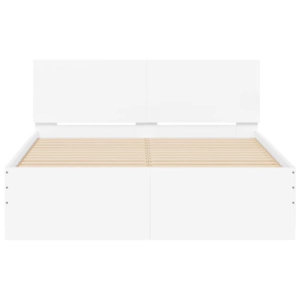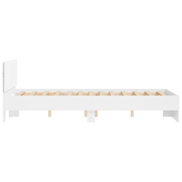 Sängynrunko päädyllä ja LED-valoilla valkoinen 135x190 cm