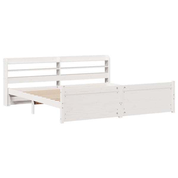 Sängynrunko päädyllä valkoinen 200x200 cm täysi mänty