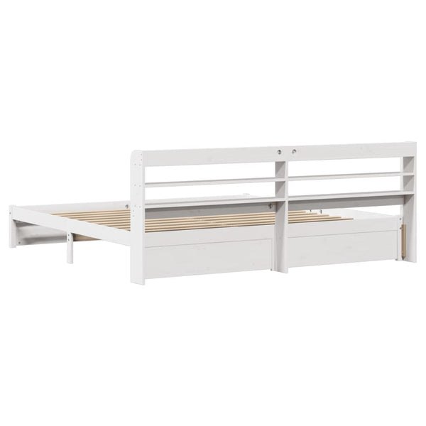Sängynrunko päädyllä valkoinen 200x200 cm täysi mänty